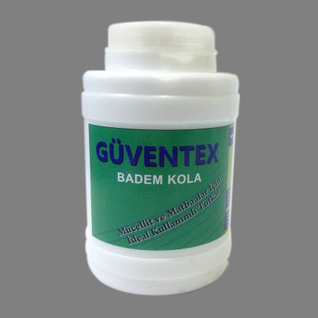 Badem kolası, nişasta bazlı bir üründür. Mücellit ve cilt işlerinde takviye kolası olarak kullanılır. Ayrıca plastik tutkal ile karıştırılarak kullanıldığında tutkalın kuruma süresini uzatır. Makine ve kuru film temizliği için su veya alkolsüz solventler kullanılmalıdır. |